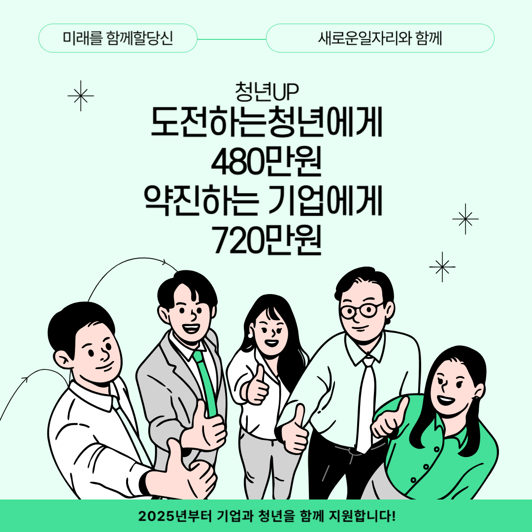 • 유형 1: 신규 채용 청년 1인당 월 최대 60만 원씩 1년간 지원(최대 720만 원).
